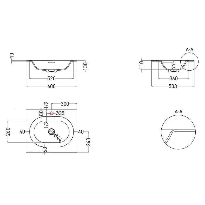 Salini Onda Flow Oval Essentials Раковина 60х50х14см., подвесная, 1 отв., цвет: белый матовый