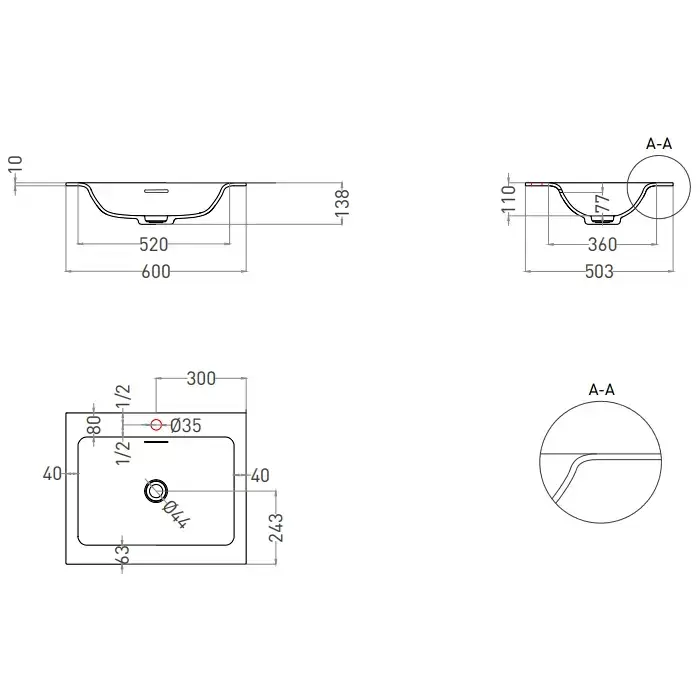 Salini Onda Flow Square Essentials Раковина 60х50х14см., подвесная, 1 отв., цвет: белый матовый