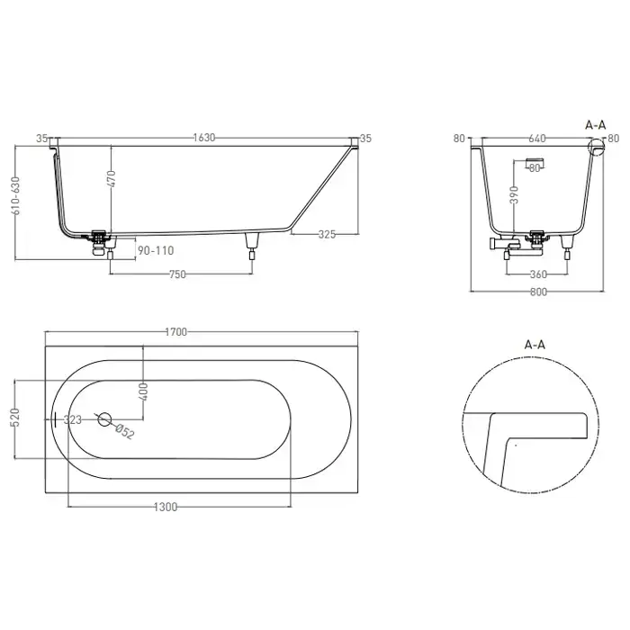 Salini Ornella Kit Ванна 170х80х60см., встраиваемая, S-Sense, донный клапан, сифон, щелевой слив-перелив, цвет: белый глянцевый