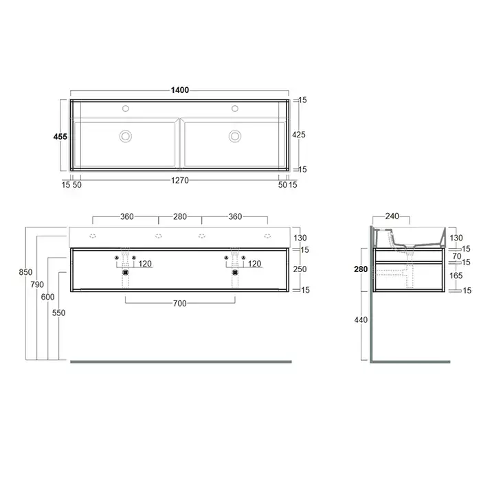 Simas Agile Структура металлическая 141x46xh28см, подвесная, для раковины с 1 отв., AG141, с 1 полкой, цвет: черный матовый