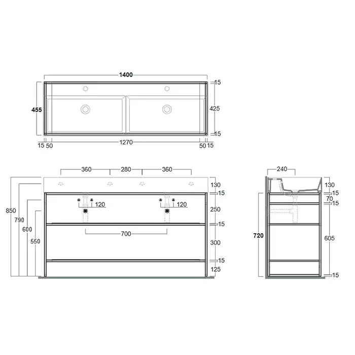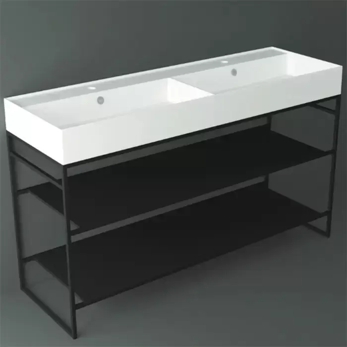Simas Agile Структура металлическая 141x46xh72см, напольная, для раковины с 1 отв., AG141, с 2 полками, цвет: черный матовый