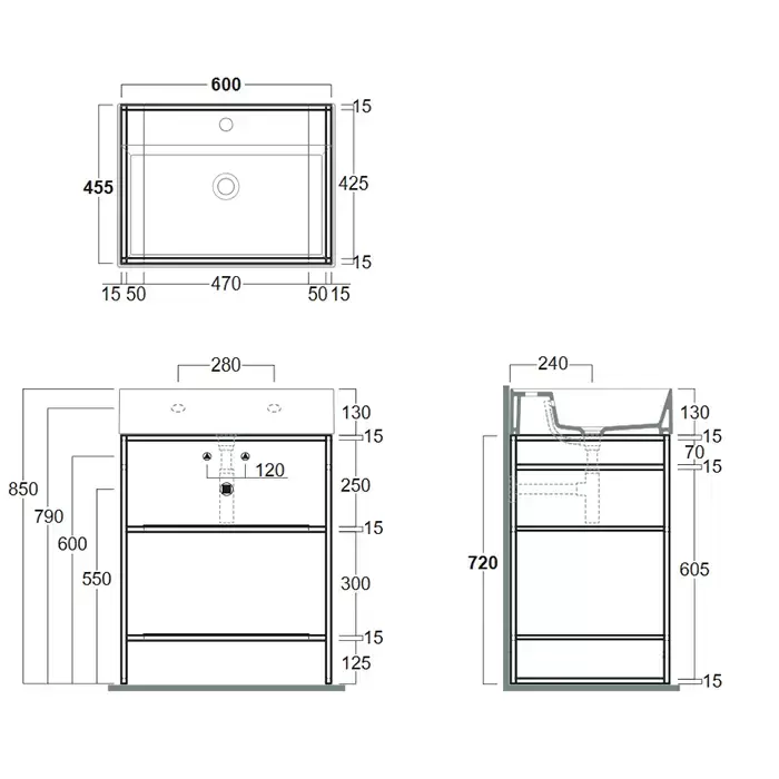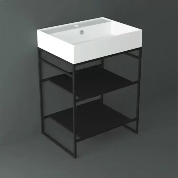 Simas Agile Структура металлическая 61x46xh72см, напольная, для раковины с 1 отв., AG61, с 2 полками, цвет: черный матовый