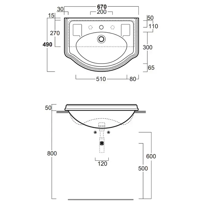 SIMAS Arcade Раковина 67х49 см, 3 отв., цвет: белый