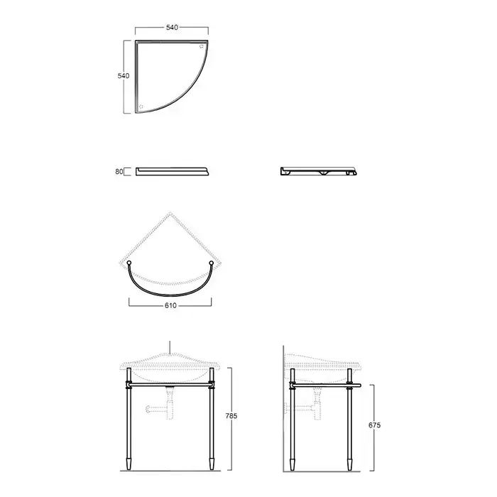Simas Arcade Угловая структура для раковины AR884 и полки AR894, цвет: хром (с царапинами/потертостями)