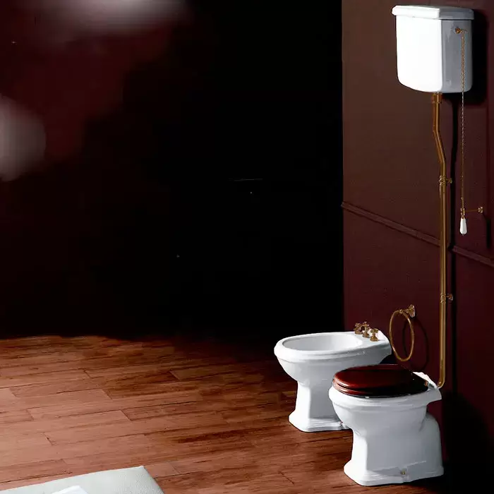 SIMAS Arcade Унитаз напольный, выпуск в пол, 36,5х55см, с высоким бачком, с фурнитурой, цвет: белый/бронза