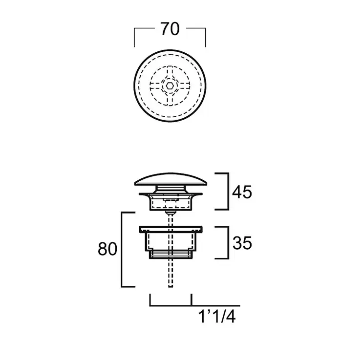 Simas Донный клапан, клик-клак, с керамической крышкой, цвет: черный матовый