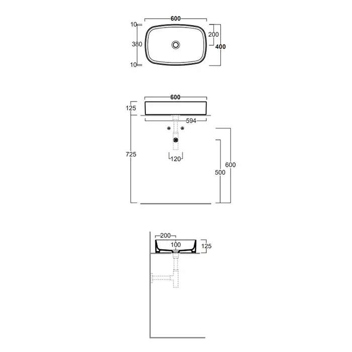 Simas Foriu Раковина накладная 60х40х13cм., без отв., цвет: Cemento matt