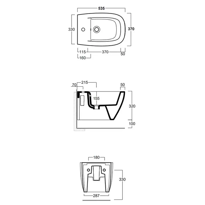 Simas Juniper Биде подвесное 53,5x370xh32см., с 1 отв., цвет: белый глянец