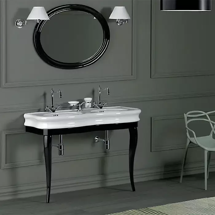 SIMAS Lante Комплект мебели, консоль 111х50.4см, с двойной раковиной на 2 отв., зеркало овальное, напольный, цвет: черный