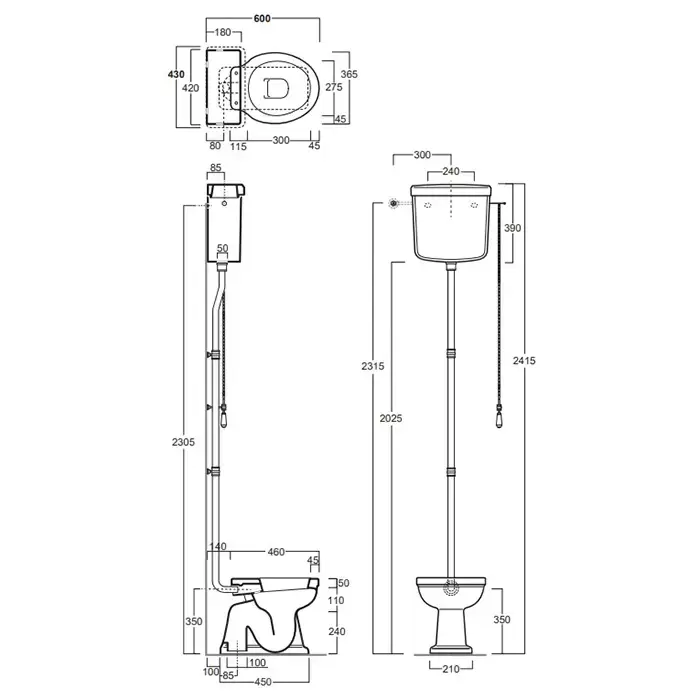 SIMAS Londra Унитаз 60х36.5см, c вертикальным сливом, с высоким бачком, механизмом и трубой цвет золото