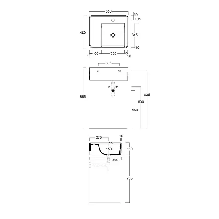 Simas Ratio Раковина чаша подвесная 55x46xh18 см, с 1 отв. для смесителя, без перелива, цвет: белый