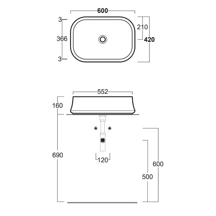 Simas Sharp Раковина 60х42см., накладная, без отв., без перелива, цвет: Navy matt