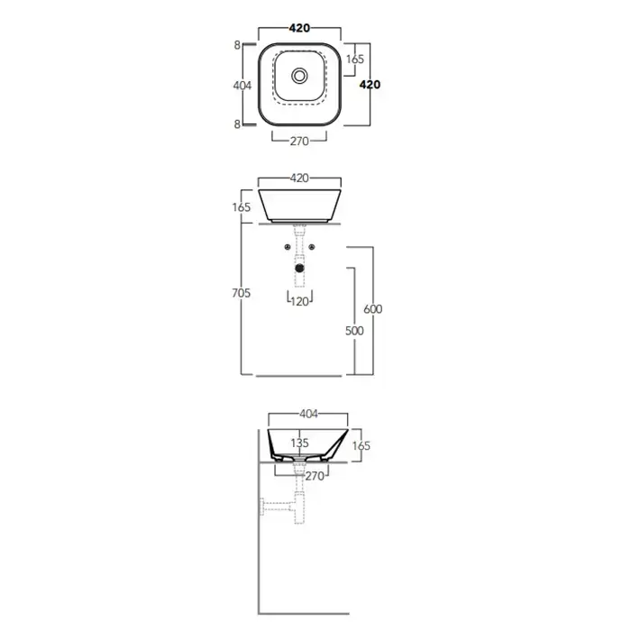 Simas Wave Раковина-чаша 42х42х16.5 см, без отв., цвет: белый