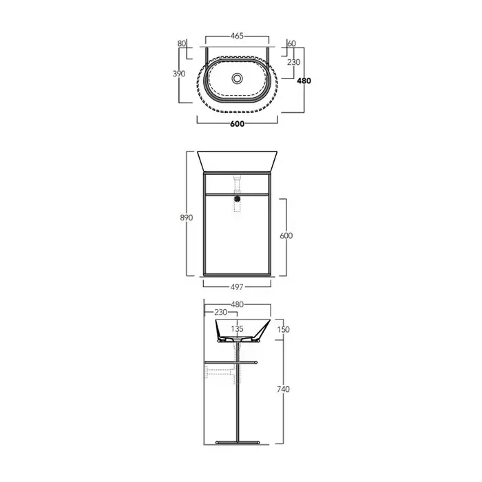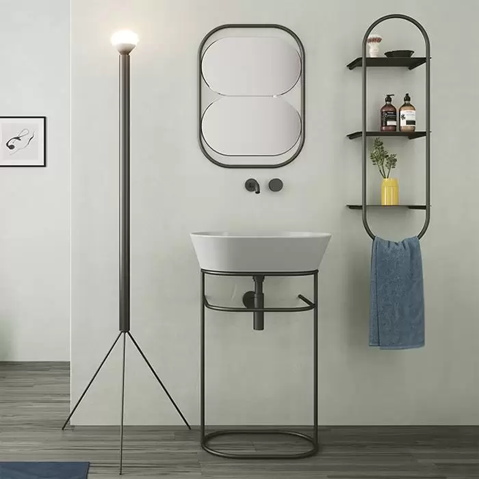 Simas Wave Структура металлическая напольная 50х40х75 см, с раковиной без отв. под смеситель, цвет: черный матовый