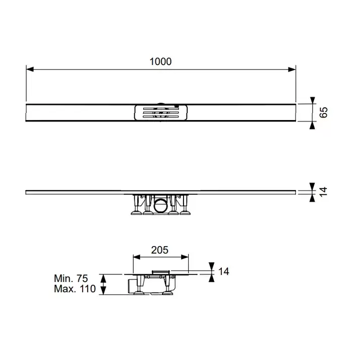 TECE Комплект TECElineo: подрезной дренажный канал, профиль 65 х 1000 мм,сифон 50, погружной стакан с мембр.гидроизоляционная манжета