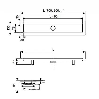 TECE Комплект TECElinus для монтажа дренажного канала 900мм с основой для плитки "tile" и панелью "steel" 2 в 1