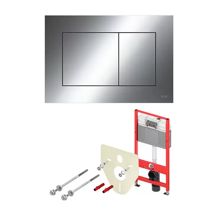 TECEbase 2.0 комплект 4в1: инсталляция, звукоизоляция, крепление, панель смыва TECEnow, цвет: хром