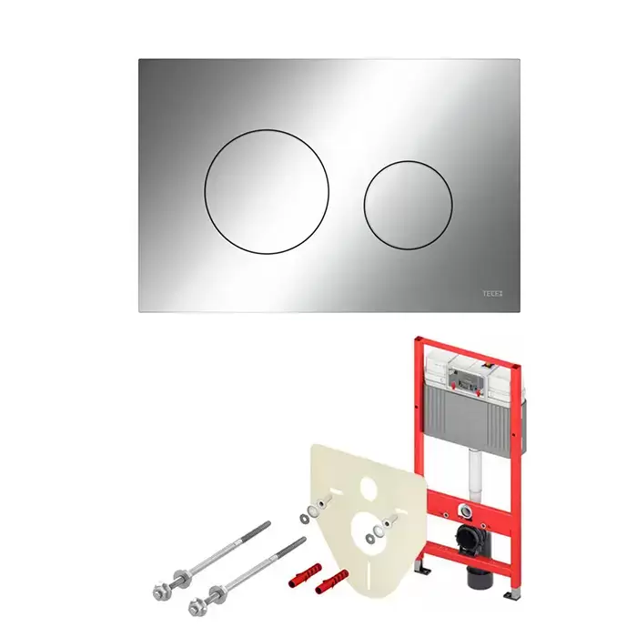 TECEbase 2.0 модуль (4в1): инсталляция TECEBase, шпильки к стене, звукоизоляция 9200010 и клавиша 9240921 хром глянцевый
