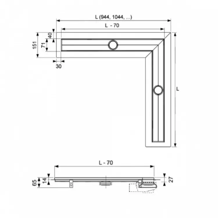 TECEdrainline Комплект для установки углового дренажного канала 1500х1500 мм, с гидроизоляцией Seal System
