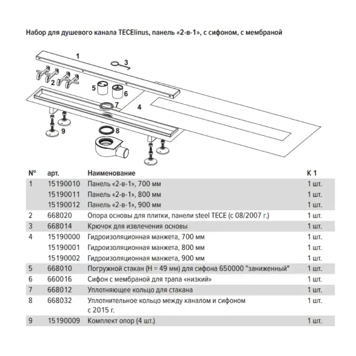 TECElinus Комплект для монтажа дренажного канала 2 в 1: основа для плитки "tile" и панель "steel", 60см., цвет: хром
