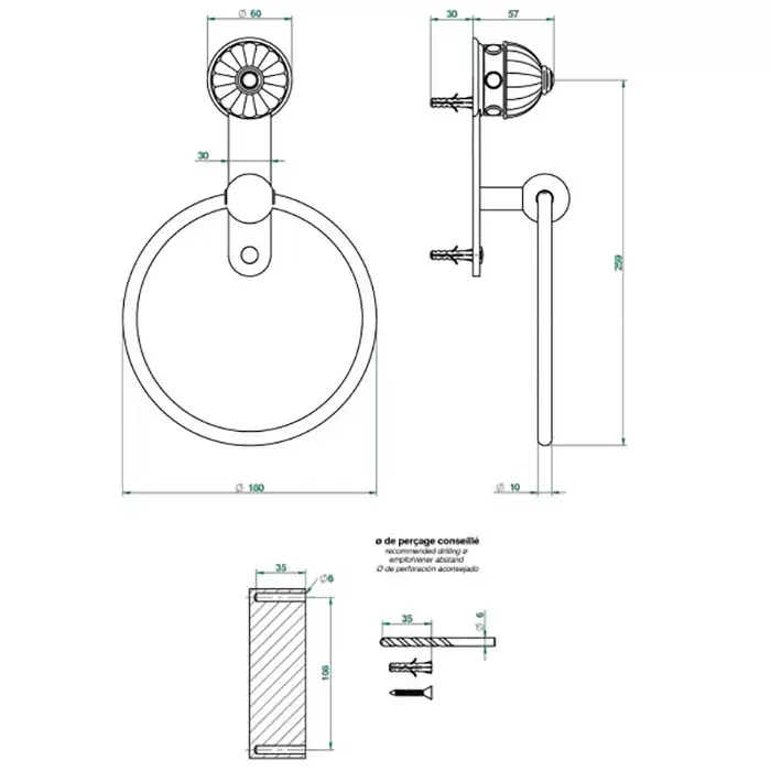 THG Amboise Jaspe rougе Держатель - кольцо 18см., подвесной, цвет: золото