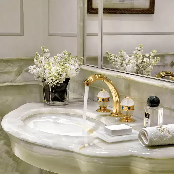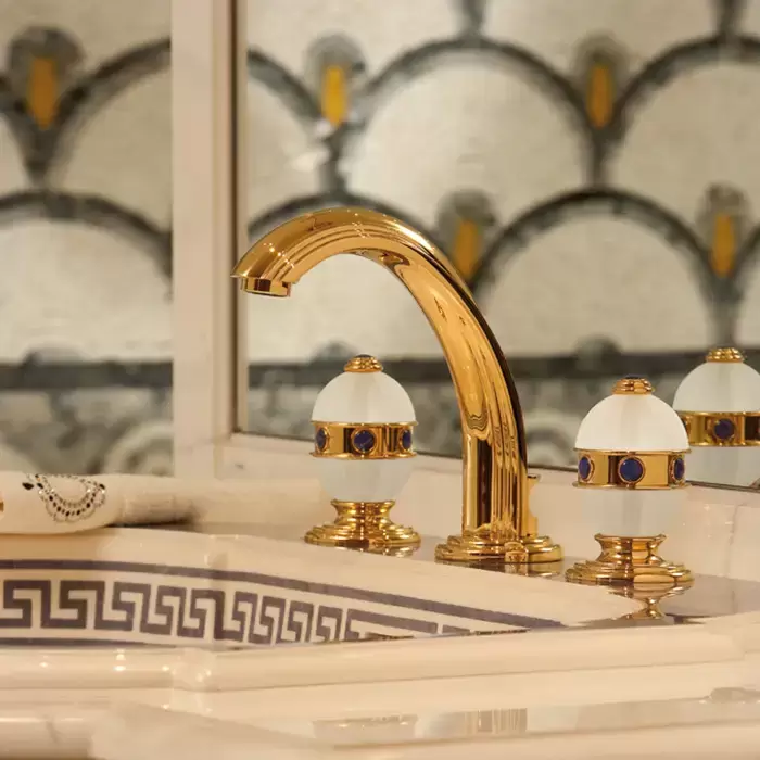 THG Amboise Lapis Lazuli Смеситель для раковины, 3 отв., цвет: золото/лазурит