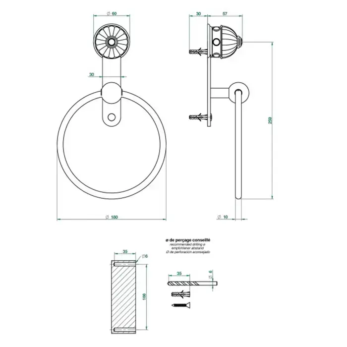 THG Amboise Onyx noir Держатель - кольцо 18см., подвесной, цвет: золото