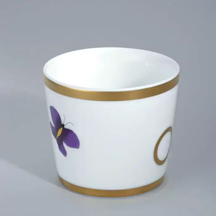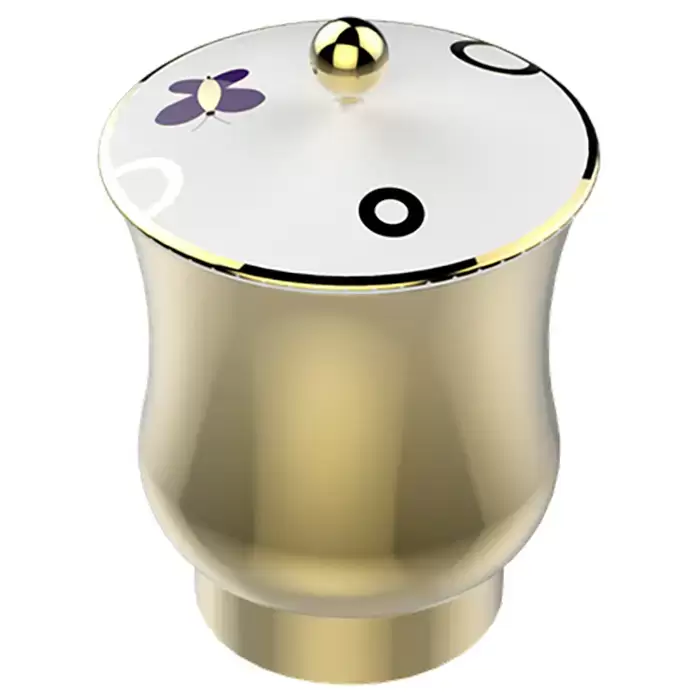 THG CAPUCINE MAUVE DECOR OR Китайская лакированная коробка с белой керамической крышкой Ø126 мм., middle size, декор золото/лиловый, цвет: золото