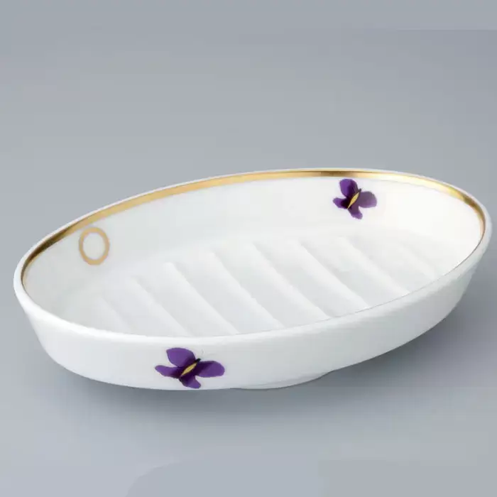 THG CAPUCINE MAUVE DECOR OR Мыльница керамическая, настольная, декор золото/лиловый, цвет: белый