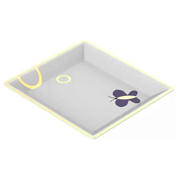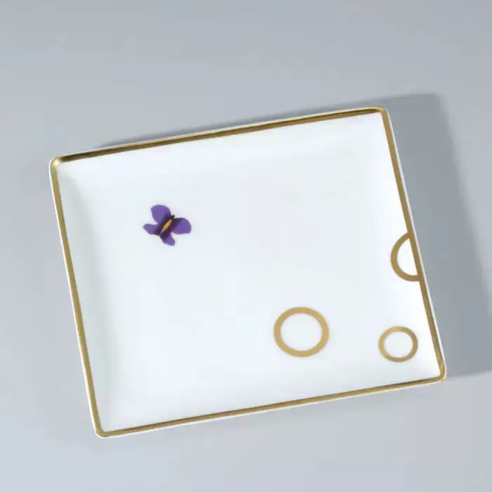 THG CAPUCINE MAUVE DECOR OR Поднос керамический 122х110 мм., настольный, small size, декор золото/лиловый, цвет: белый