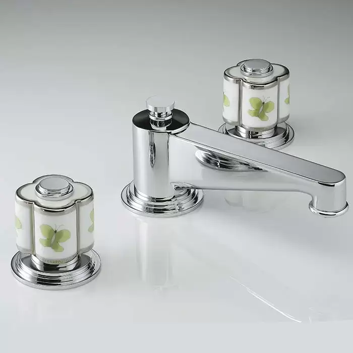 THG CAPUCINE VERT DECOR PLATINE Смеситель для раковины на 3 отверстия, с донным клапаном, декор платина/зеленый, цвет: хром