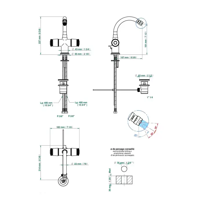 THG CORVAIR FIOR DI BOSCO Смеситель для биде на 1 отверстие, 2-х вентильный, с донным клапаном, цвет: Blush PVD