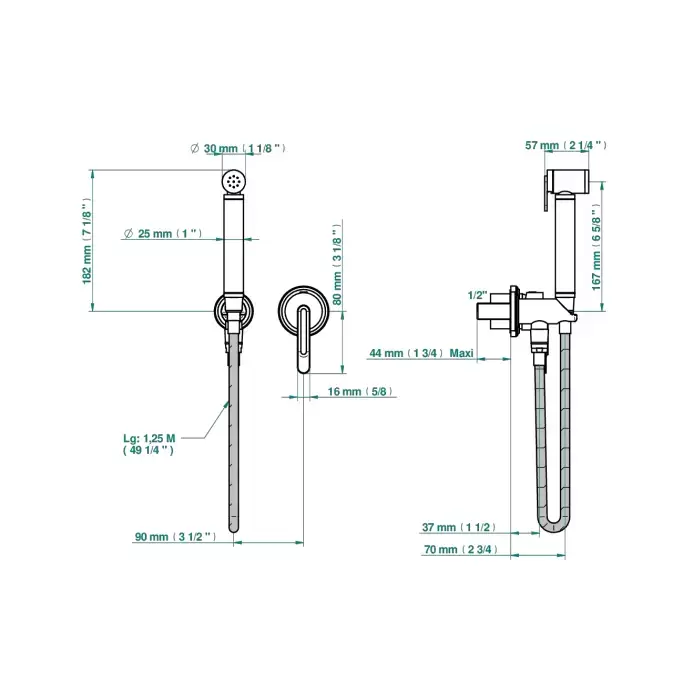 THG CORVAIR Гигиенический душ в комплекте с встраиваемым однорычажным смесителем, шланг 1250 мм., держатель с подводом воды, внешняя часть, цвет: хром