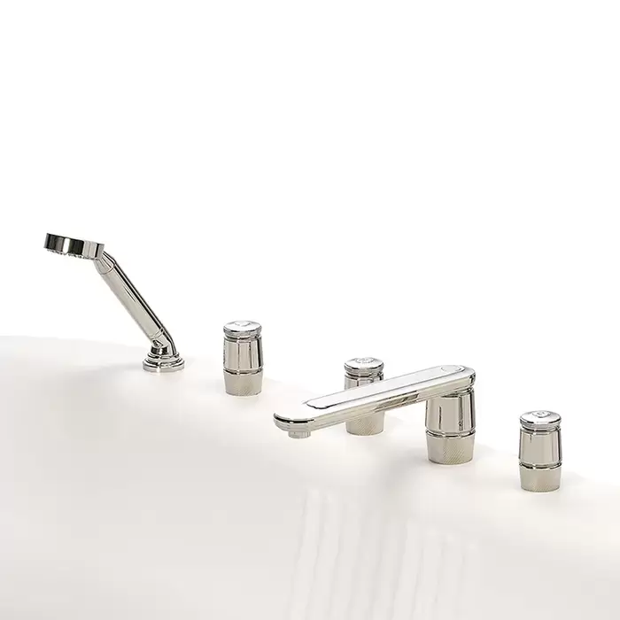 THG CORVAIR Смеситель на борт ванны на 5 отверстий, двойной, с ручным душем, цвет: хром