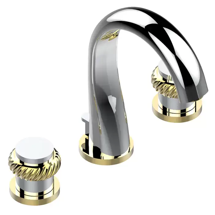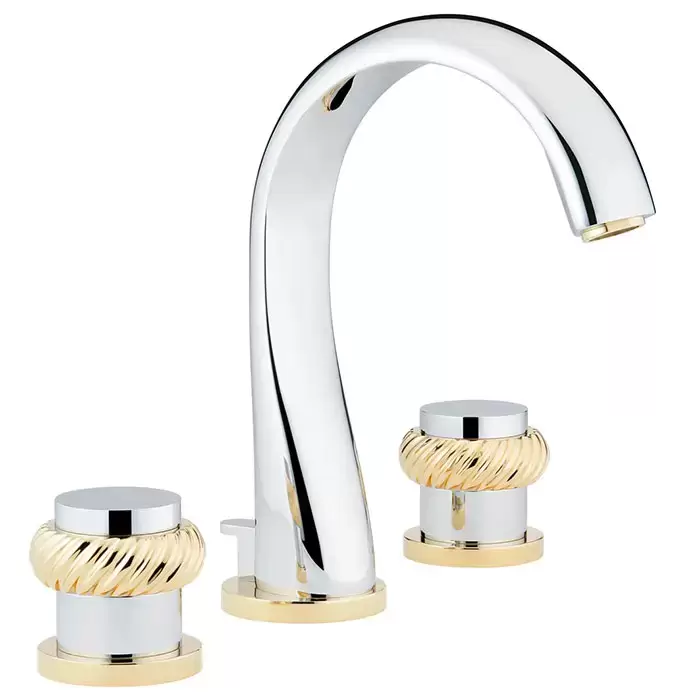 THG Diplomate Roped Rings Смеситель для раковины на 3 отверстия, с донным клапаном, цвет: хром/золото