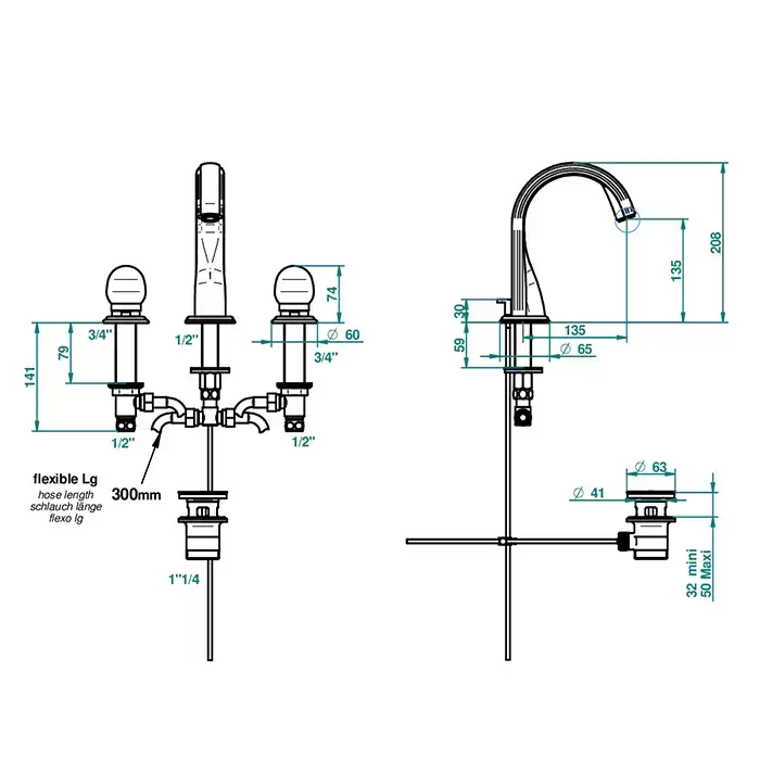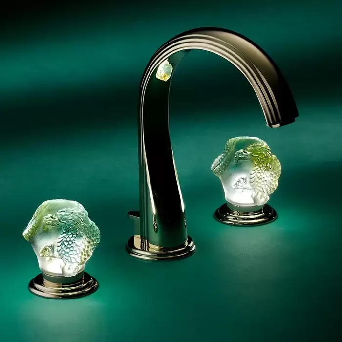 THG Dragon Jade Смеситель для раковины, 3 отв., с подсветкой, цвет: золото/хрусталь