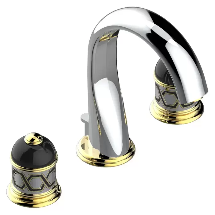 THG Duomo Смеситель для раковины, 3 отв., декор Aranja/хрусталь, цвет: никель/золото