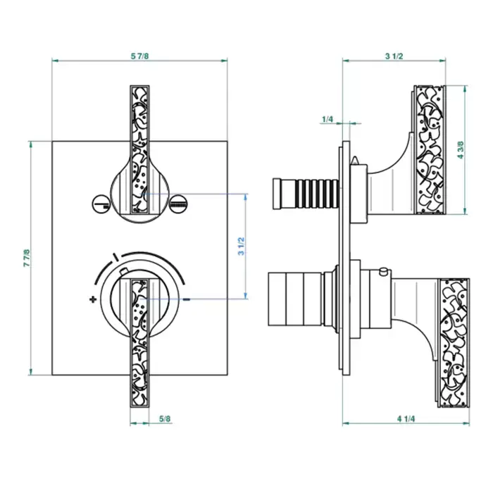 THG Ginkgo Смеситель для душа, термостатический, с переключателем на 2 потока, цвет: золото/хрусталь