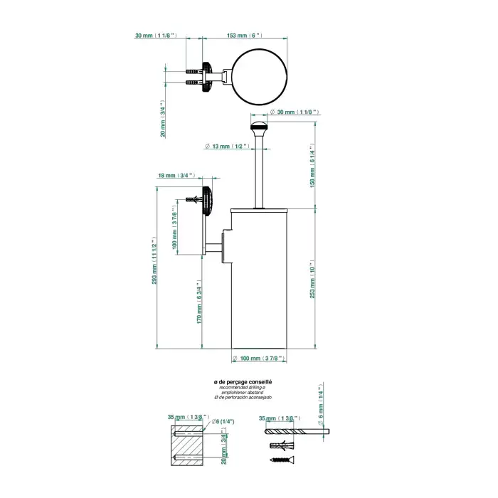 THG Hirondelles Gold Stamped Ершик подвесной, цвет: хром