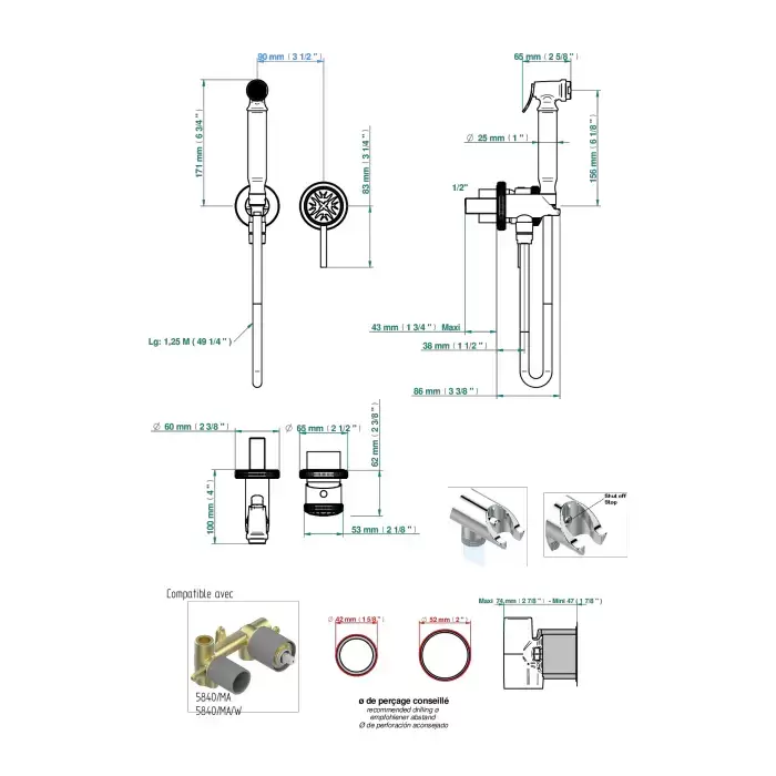 THG Hirondelles Gold Stamped Гигиенический душ со встраиваемым смесителем, настенный, цвет: хром