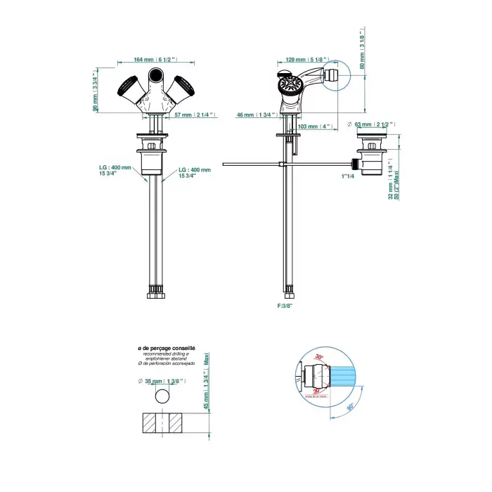 THG Hirondelles Gold Stamped Смеситель для биде, 1 отв., цвет: хром