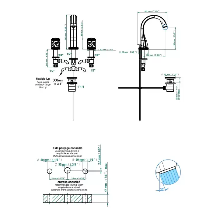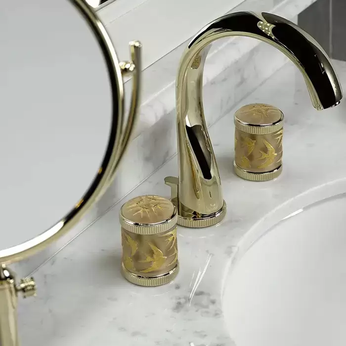 THG Hirondelles Gold Stamped Смеситель для раковины, 3 отв., цвет: Soft gold