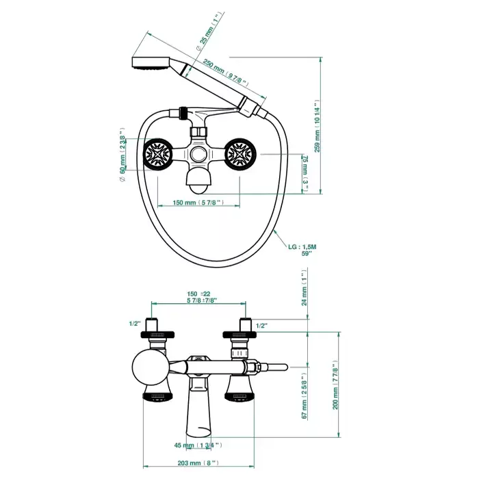 THG Hirondelles Gold Stamped Смеситель для ванны, настенный, с ручным душем, цвет: Gold color PVD