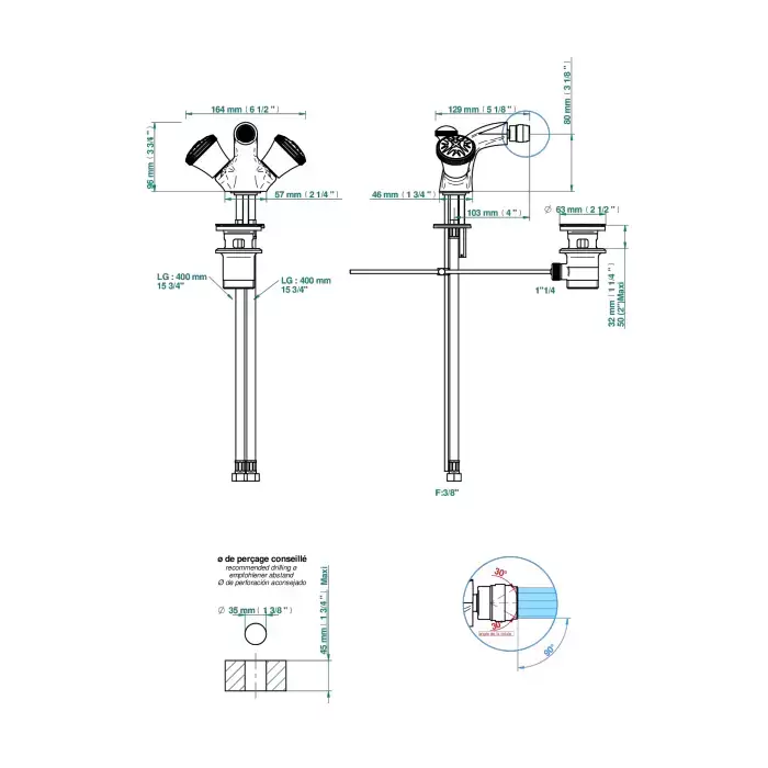 THG Hirondelles Platinum Stamped Смеситель для биде, 1 отв., цвет: хром