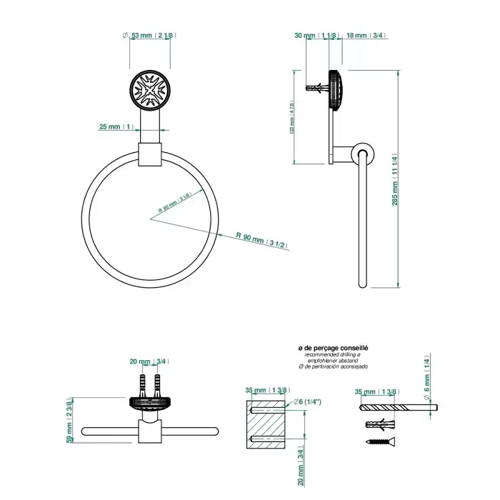 THG Hirondelles Полотенцедержатель - кольцо 18см., цвет: Umber color PVD