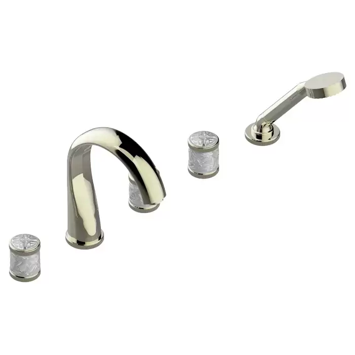 THG Hirondelles Смеситель на борт ванны, 5 отв., с ручным душем, цвет: Soft gold