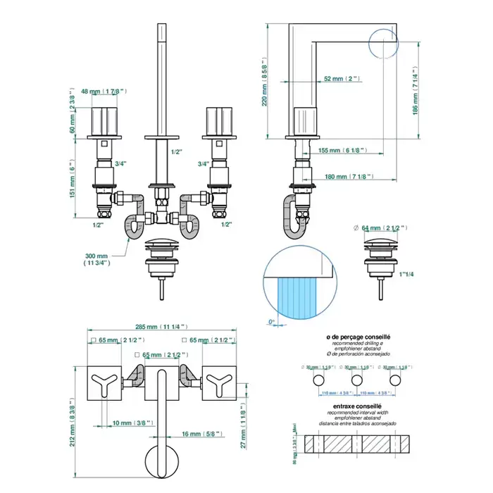THG Icon-X Metal Смеситель для раковины, 3 отв., с донным клапаном, цвет: Aranja