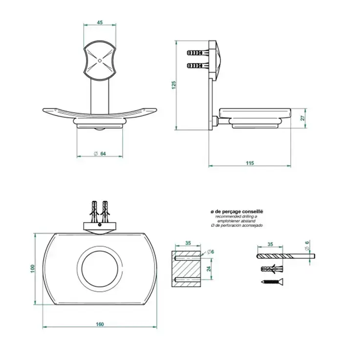 THG Infini white porcelain Мыльница стеклянная, подвесная, цвет: хром