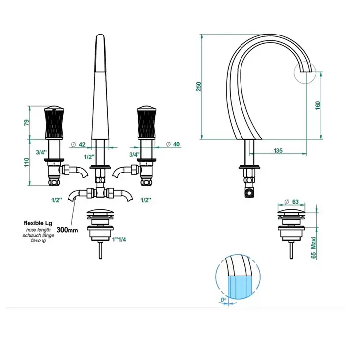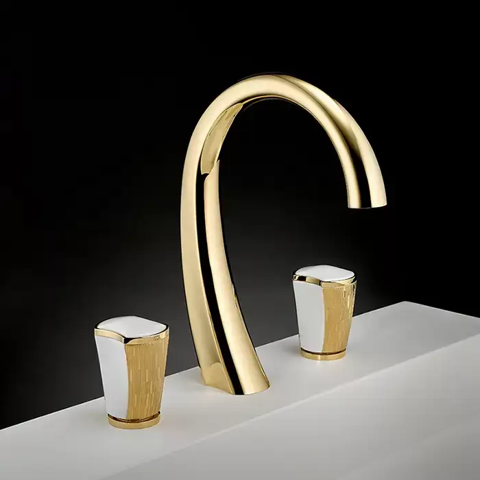 THG Infini white porcelain with gold decor Смеситель для раковины на 3 отверстия, с донным клапаном, цвет: полированное золото