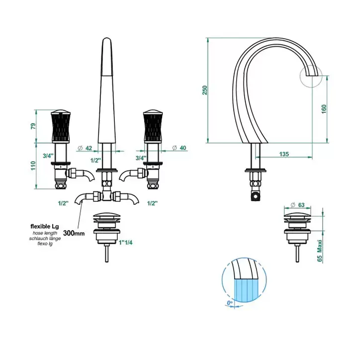 THG Infini white porcelain with platinum decor Смеситель для раковины на 3 отверстия, с донным клапаном, цвет: хром